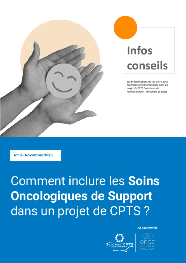 N°18 - Inclure les soins oncologiques de support dans un projet CPTS N°17 - Accompagner la prise en charge des maladies rares en CPTS N°16 - L'activité physique dans les parcours de soins CPTS N°15 - Comment construire un rapport d’activité CPTS ? N°14 - Intégrer qualité et pertinence des soins au sein des CPTS N°13 - Inclure la prise en charge du diabète au sein d'une CPTS N°12 - Comment inclure la périnatalité dans un projet de CPTS ? N°11 – Inter-CPTS : un outil facilitateur pour mutualiser les dynamiques N°10 – Comment définir et formaliser les partenariats d’une CPTS ? N°9 – Impliquer les usagers dans la construction d’une CPTS N°8 – Comment élaborer les orientations du projet de santé ? N°7 - Mission dédiée à la réponse aux crises sanitaires graves N°6 – Évolution du cadre d’intervention des CPTS N°5 – Comment inclure la démarche ICOPE dans un projet de santé ? N°4 – Améliorer la prise en charge des soins non programmés N°3 – Définir & suivre les indicateurs d’un projet CPTS N°2 - Mobiliser et fédérer les acteurs N°1 Perspectives Négociations ACI